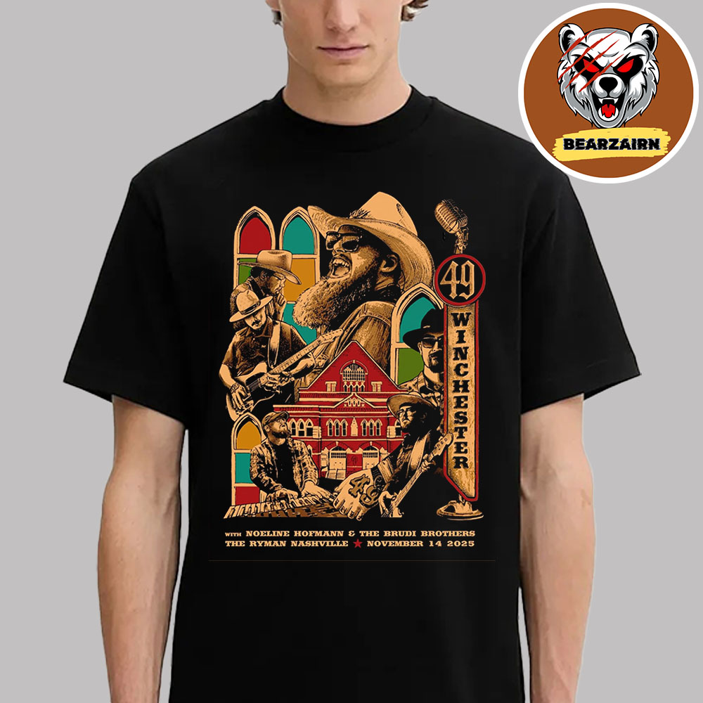 49 Winchester with the “Night 1 at Ryman Auditorium, Nashville TN – November 14 2025” Unisex T-Shirt Features: