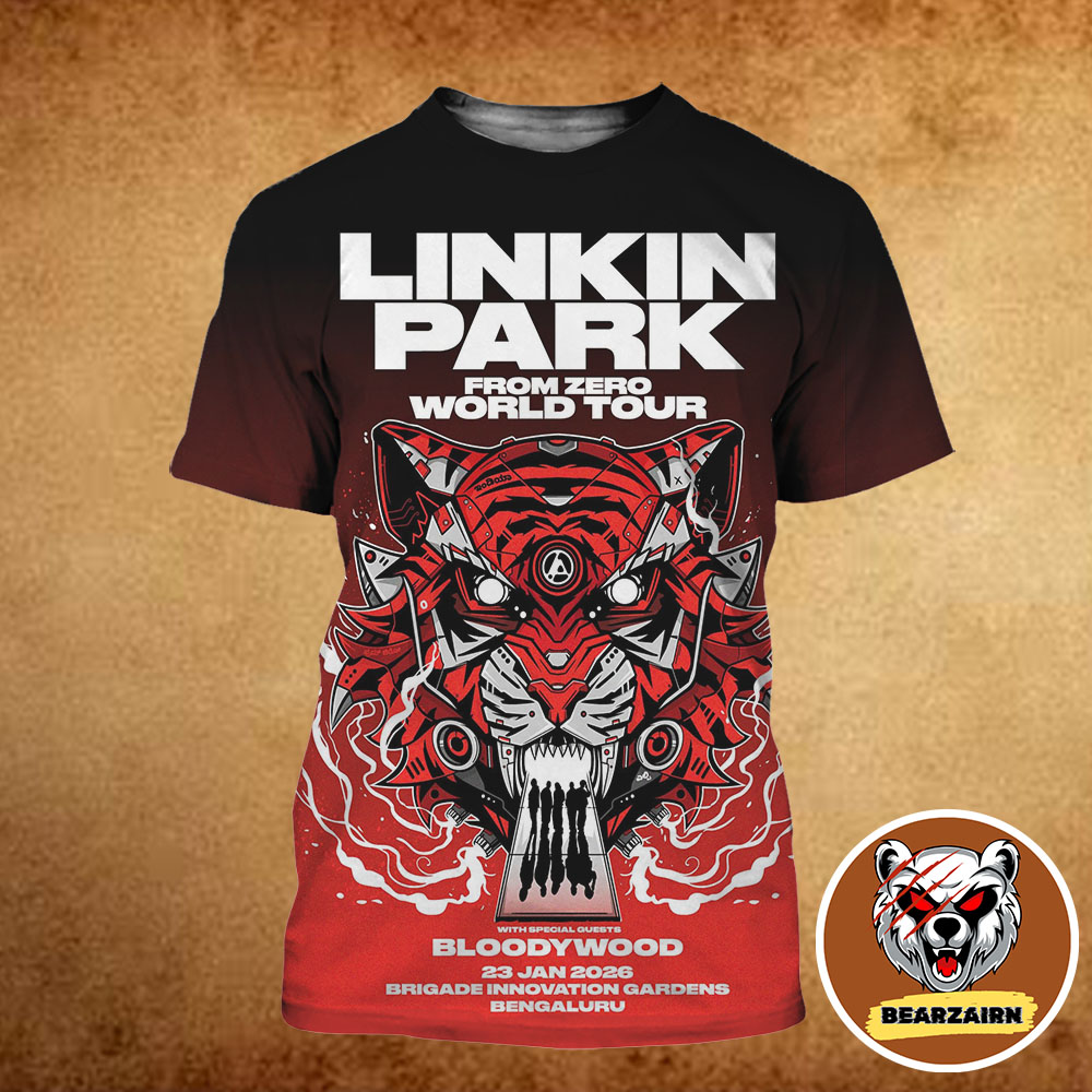 Bearzairn: About Linkin Park From Zero Event Poster In Bengaluru At Brigade Innovation Gardens On January 23th 2026 World Tour With Bloodywood The Tiger Artwork All Over Print Shirt Introduction